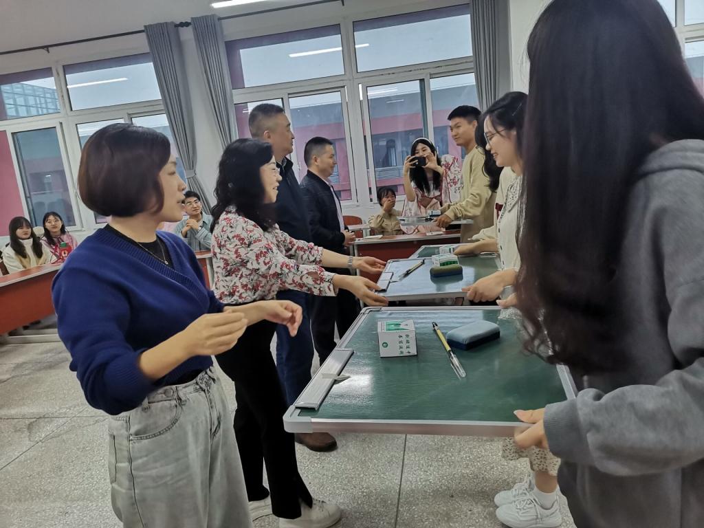 接着,学院领导为同学们发放了小黑板和粉笔等技能训练用具。研究生辅导员王陈超、研究生代表文杨以及本科生代表刘淇同学分别发言。
