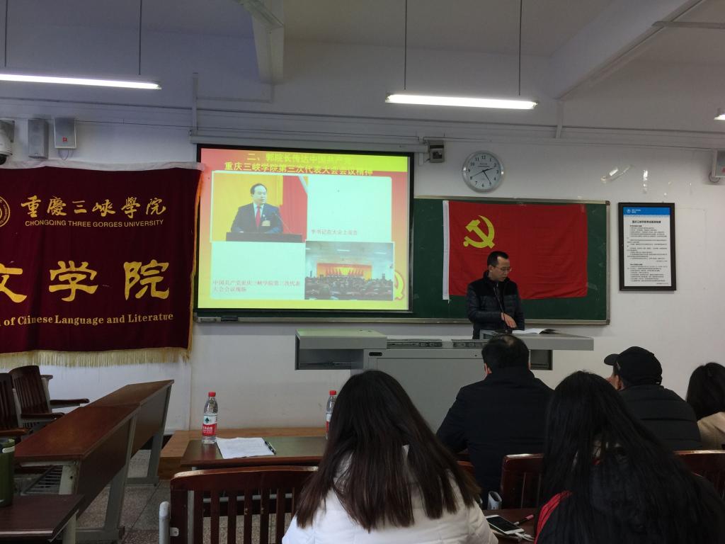 会上,bw必威西汉姆联官网院长兼总支副书记,党代表郭作飞传达了中国共产党重庆三峡学院第三次代表大会报告精神,从“关于学校6年来发展取得的成绩、新的历史时期发展战略、具体措施任务、全面深化转型发展”四个方面,让大家深刻体会到新一届党委对学校发展所做的详实、客观、公正、清晰定位,并表达了自己对三峡学院在新一届党委领导下美好未来的信心。