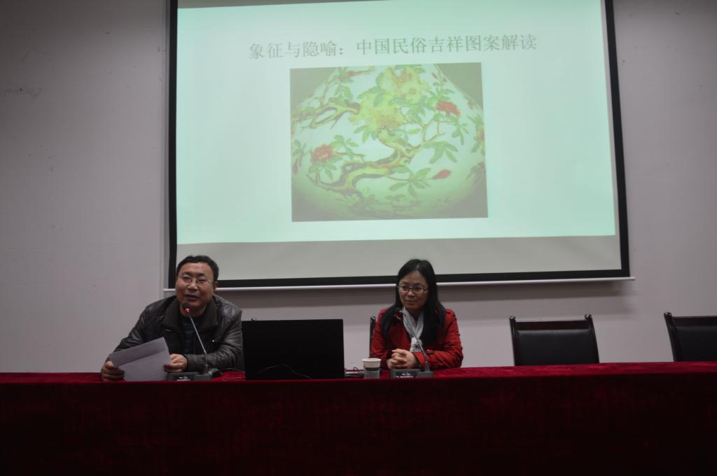 3月14日晚,中国社会科学院毛巧晖研究员应邀在我校学术报告厅2教106做了题为“象征与隐喻:中国民俗吉祥图案解读”的专题讲座,此次讲座由我院副院长王志清教授主持,我院教师,研究生及2015级本科生参加本次讲座。