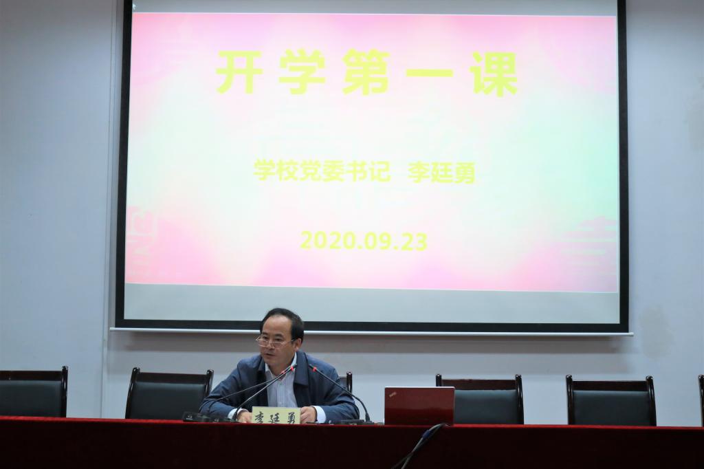 9月23日晚,在学院新生入学典礼后,学校党委书记李廷勇为我院2020级本科新生带来一堂题为“做一名德智体美劳全面发展的社会主义建设者和接班人”的开学第一课。我院领导班子、学工队伍、党政办工作人员及全体新生参加并认真聆听了这堂别开生面的第一课。