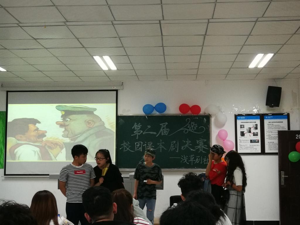 为丰富校园文化生活,培养学生创新意识,激发学生创作热情,5月18日晚,我院于1教202举办了第二届校园课本剧大赛决赛,我院学生会副主席兼大学生自律委员会主席李进,副主席兼学生团体联合会主席陈贞宇,影视评论会会长袁杰,三峡诗社社长郭刘娇,大学生语言爱好者协会会长马晓雪应邀出席并担任评委。