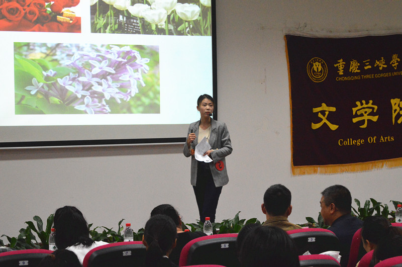 大赛伊始,主持人致开幕词并介绍与会领导及嘉宾。本次师范生技能大赛从授课内容设计、教学方法、教态、重难点把握等方面对选手进行综合考核,考核方式包括即兴演讲与讲课两部分。首先,选手们随机抽取演讲主题,各位选手观点明晰、立论深刻地进行了即兴演讲,随后,选手们深入浅出地进行课文讲解,比赛现场精彩纷呈,掌声不断。五号选手龚礼银表达流畅、从容自信,她深刻地分析了《边城》的人物关系、语言等特点,得到了评委们的赞许。六号选手谢佳以其从容的现场应变能力、丰富的储备知识、精彩的授课内容,完成了《烛之武退秦师》这一讲文,赢得了全场的掌声。