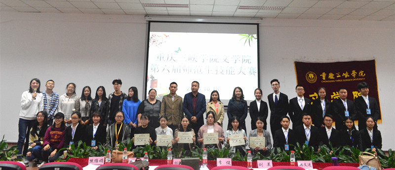 为进一步增强我院师范生实践应用能力和创新能力,彰显专业特色,强化学生教学技能,10月18日晚,我院于明辨楼二栋106举行了第六届师范生技能大赛。我院副院长李俊、中文系主任林辉春,副主任严小红、教学助理刘美、团总支书记兼学工办主任熊维娟及教师代表韩文进出席本次比赛,我院2016级全体师范生以及我院研究生参与学习观摩。