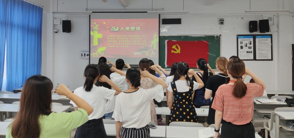 6月21日下午,我院学生党支部在明辨楼1栋203室举行了新党员入党宣誓仪式。学生第二党支部书记聂兰、学生党支部党员以及13名新党员参与本次宣誓仪式。