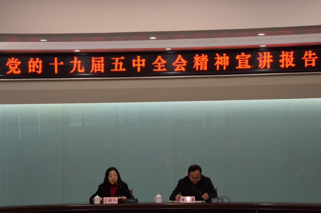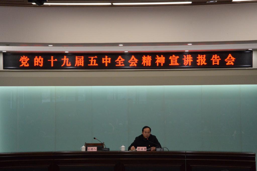 李廷勇从全会的重大意义、全会的主要精神、新发展阶段的科学论断、2035年远景目标和“十四五”主要目标、“十四五”时期经济社会发展的重点任务、着力构建新发展格局的战略构想、坚持党的全面领导,动员各方面力量为实现“十四五”规划和2035年远景目标而团结奋斗七个方面对党的十九届五中全会精神进行了系统宣讲,并对重庆市委五届九次全会精神作了深入解读。