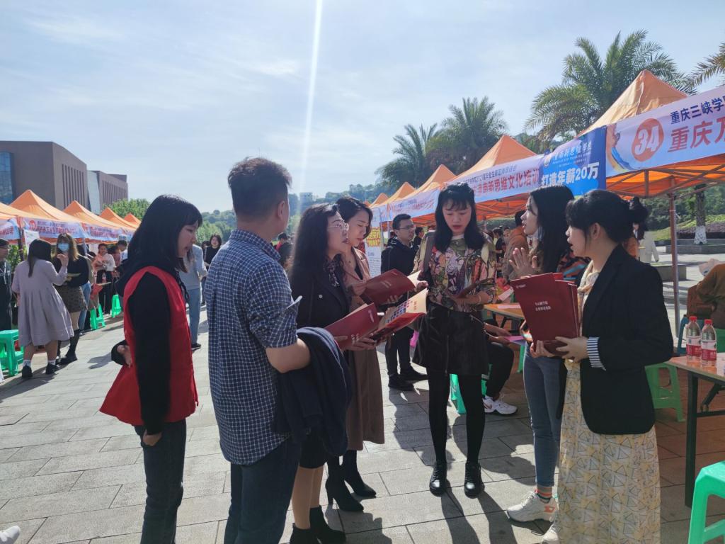 2021年4月27日,由我院、教师教育学院、外国语学院联合举办的2021届毕业生师范类专场招聘会取得圆满成功。本次双选会吸引了重庆市内外50余家中小学校及教育类企业入校揽才,为毕业生提供就业岗位200余个,招聘需求计划人数近2000名。在双选会现场,我院党政领导莅临现场与企业进行深入交谈,对应聘学生进行就业指导,并向用人单位积极推荐优秀毕业生。据统计,此次双选会中我院毕业生共投递简历300余份,部分学生已与用人单位达成初步就业意向。