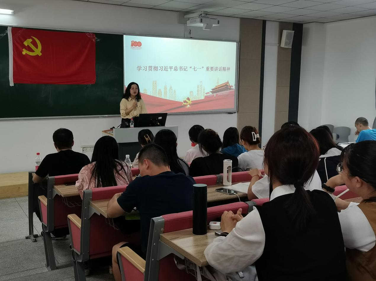 10月9日下午,我院党总支学生党支部在博学楼1栋举行习近平总书记“七一”重要讲话精神系列宣讲会。学院党总支书记唐晓萍、学生党支部书记王陈超、张悦担任主讲,全体研究生、学生党员、入党积极分子参与学习。