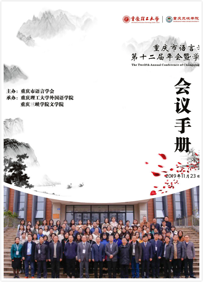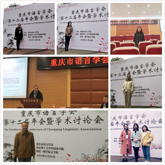 2019年11月22-24日,重庆市语言学会第十二届年会暨学术讨论会在重庆理工大学召开,本次会议由重庆市语言学会主办,我院与重庆理工大学外国语学院联合承办,学院郭作飞、向学春、蒋斌、彭馨莹、陈诗雨、王琼辉、刘宸瑜等7位教师,汉语言文字学专业3名研究生赴会。