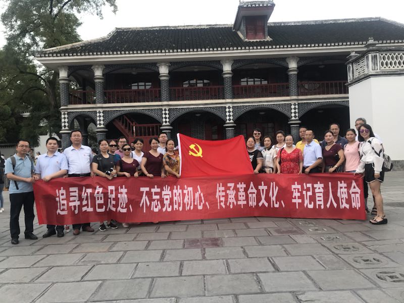 为迎接建党97周年,进一步学习贯彻党的十九大精神,加强党员党性教育,提高党员勇于担当、不断探索创新的服务意识,增强广大党员干部的爱党、爱国情怀,推进文学院“两学一做”学习教育活动的深入开展,以及凝聚各党派人士,搞好统战工作,2018年6月29日,学院党总支组织全体教工支部党员及各党派人士赴四渡赤水纪念馆、遵义会议会址、娄山关红军战争遗址,开展了“追寻红色足迹、不忘党的初心、传承革命文化、牢记育人使命”红色之旅专题学习教育活动。
