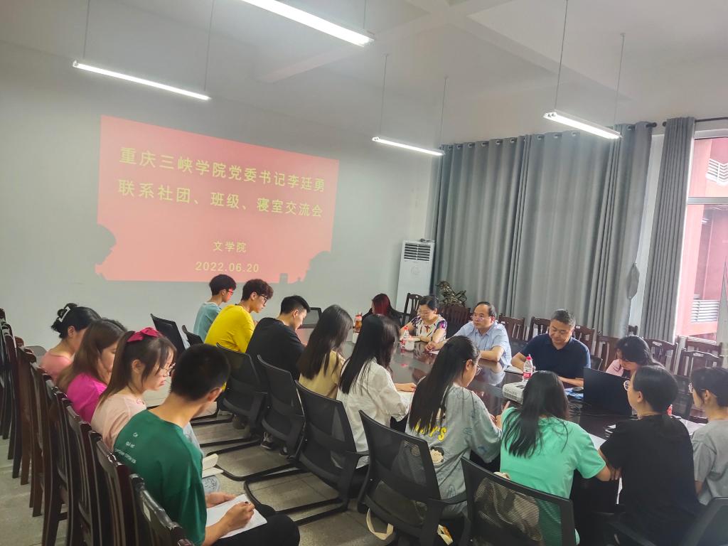 为进一步贯彻落实立德树人根本任务,加强学校领导干部与基层学生的沟通交流,6月20日下午,学校党委书记李廷勇与bw必威西汉姆联官网浅草剧社、2021级汉语言文学(师范)1班及桂花苑4舍512学生寝室的学生代表在博学楼3-418进行了面对面交流座谈。会议由bw必威西汉姆联官网团总支书记熊维娟主持,bw必威西汉姆联官网领导班子及辅导员代表参会。