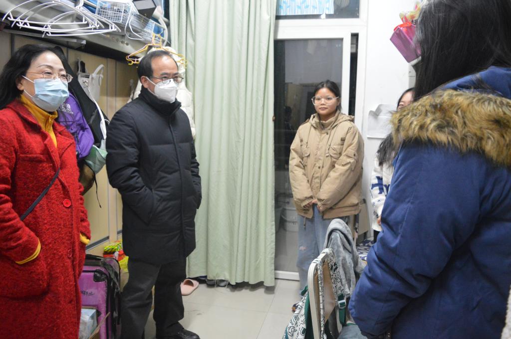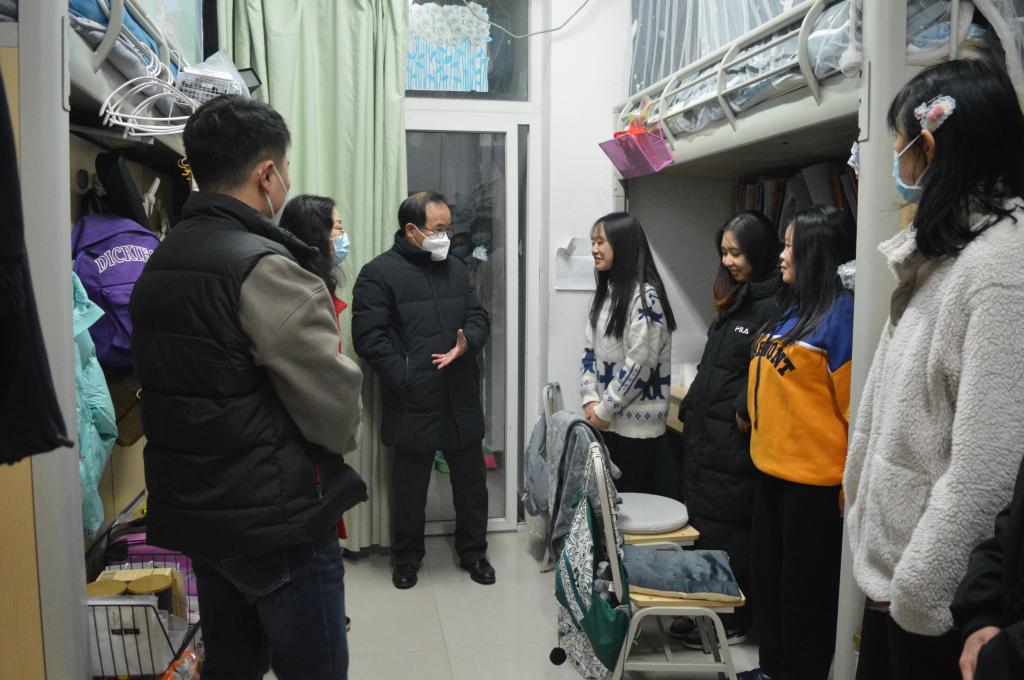 关心学生,温暖入舍,不仅能深入了解疫情之下同学们的生活学习状态,提高同学们的科学防疫意识,还能近距离倾听学生的心声,为同学们解决实际困难,为寒冷的冬夜带来丝丝暖意。