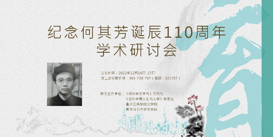 2022年12月17日,由《现代中文学刊》、《现代中国文化与文学》、贵州师范大学bw必威西汉姆联官网与重庆三峡学院bw必威西汉姆联官网联合举办的“纪念何其芳诞辰110周年学术研讨会”在线上召开。近90名来自华东师范大学、四川大学、广西大学、中国艺术研究院、浙江省社科院等高等院校与科研院所的专家学者与会。