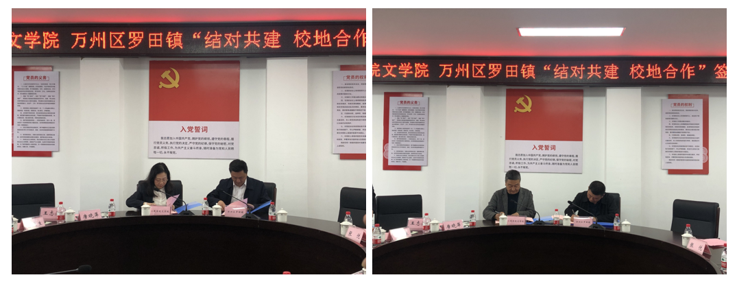 会上,双方紧紧围绕基层党建、人才培育、文化挖掘等领域开展了深入交流。与会领导一致认为,罗田镇是万州区唯一的中国历史文化名镇,校地合作一方面要突出文化赋能乡村振兴,助力罗田下好文化振兴“先手棋”,着力铺展“诗、书、画、文、景”的古韵罗田新画卷,努力绘就“山青、水绿、果甜、稻香、鱼跳”的美丽乡村新图景;另一方面要充分发挥我院专业优势,通过开展培训教育、课题调研、社会实践、文化下乡、采风创作等活动,实现产学研结合,扎实推进学院党建、学科、专业建设,不断提高人才培养质量。