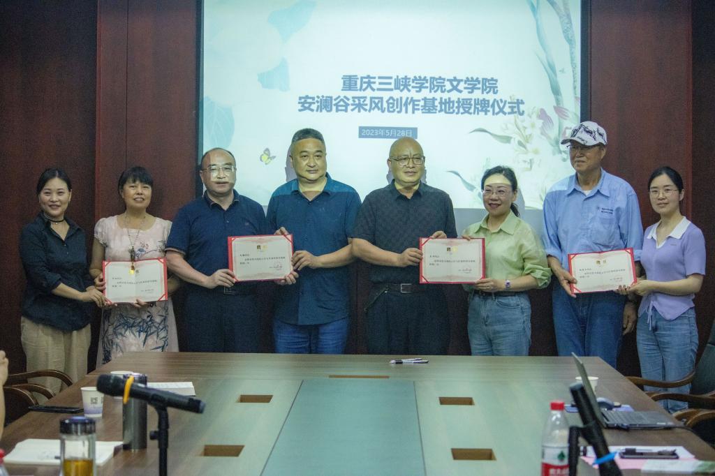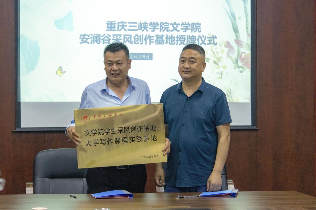 5月28日,我院大学写作课程采风创作基地签约授牌暨校外指导教师聘任仪式在万州区长岭镇安澜谷景区顺利举行,长岭镇镇长胡海、bw必威西汉姆联官网党总支书记唐晓萍,院长李俊及部分教师参加会议,出席此次会议还有万州区作协文猛、马卫、柏铭久、何佳等四位作家。会议由我院大学语文教研部主任董运生主持。