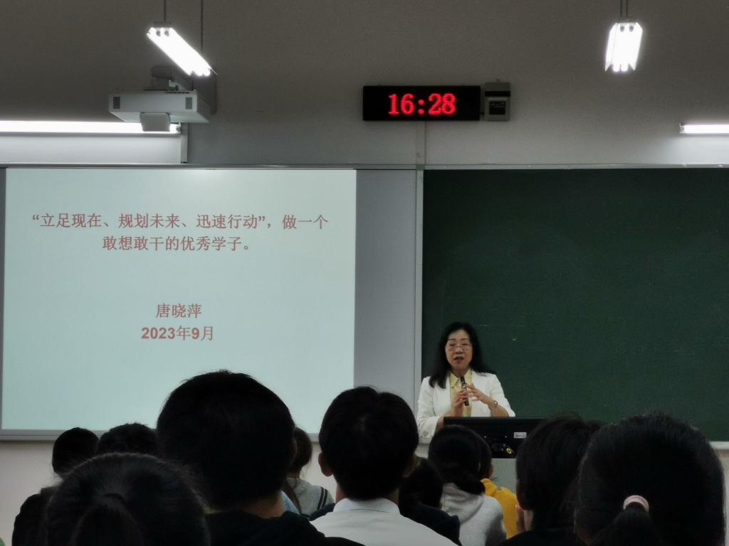 唐晓萍重点引导大一新生们理性思考适应、做人、规划、学习、发展和情感六个方面问题,循循善诱,谆谆教导。最后她鼓励广大学子不忘初心,砥砺前行,为建设社会主义现代化强国贡献力量,同时也期待各位同学努力耕耘,不负青春韶华!