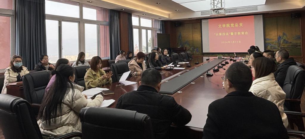 为落实新时代党的建设总要求,健全全面从严治党体系,我院党总支于2024年1月4日下午召开了“以案四说”警示教育和“以案四改”工作会,会议由学院党总支书记唐晓萍主持,学院处科级干部、教师党员参会。