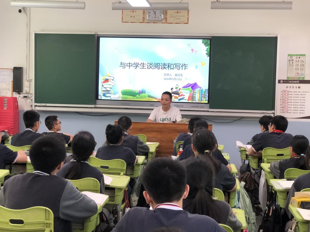 为进一步加强与实习基地的交流与合作,5月23日上午,应文德中学邀请,我院董运生老师为文德中学八年级学生做了一场主题为“与中学生谈阅读和写作”的文学交流课。