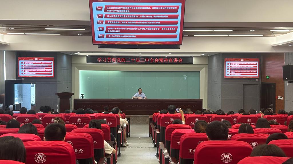 李廷勇围绕党的二十届三中全会的主要精神和重大意义、全面准确理解《决定》提出的进一步全面深化改革重大举措等内容,结合学校发展实际,对全会精神进行全面系统深入宣讲解读。