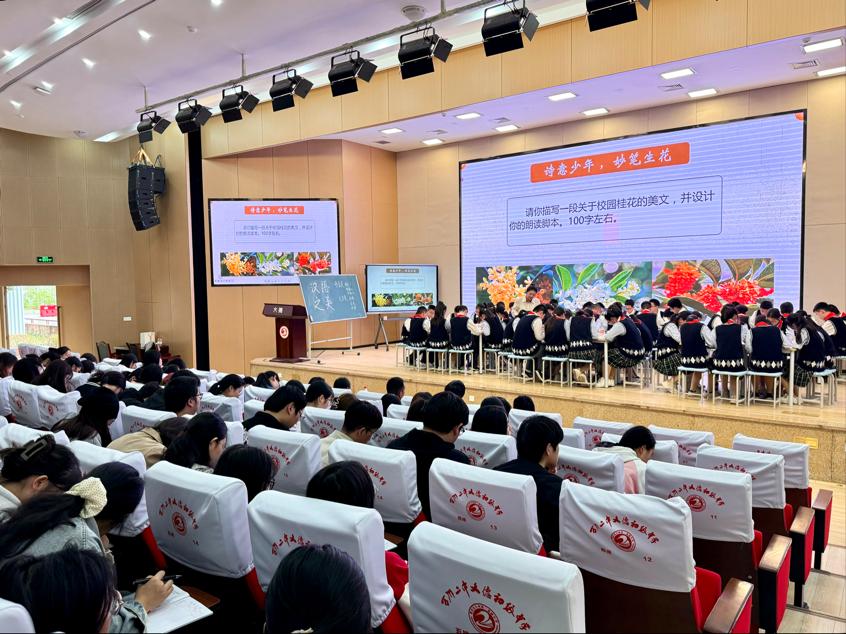 文德初中的曹雅兰老师和吴玲老师分别展示了精彩的示范课。曹雅兰老师讲授了《觅汉语之美》,以其深厚的语言功底和独特的授课风格,将汉语的韵味与美感展现得淋漓尽致。吴玲老师讲授的《回忆我的母亲》则情感真挚,通过细腻的讲解和生动的视频,让大家深刻感受到了母爱的伟大与无私。授课结束后,两位老师进行了说课,详细介绍了自己的教学设计和教学理念。随后,师范生们与授课老师进行了深入的交流和探讨。最后,文德初中谭承权副书记和大学语文教研部主任董运生分别进行了总结发言,并勉励同学们不断学习、提高技能。