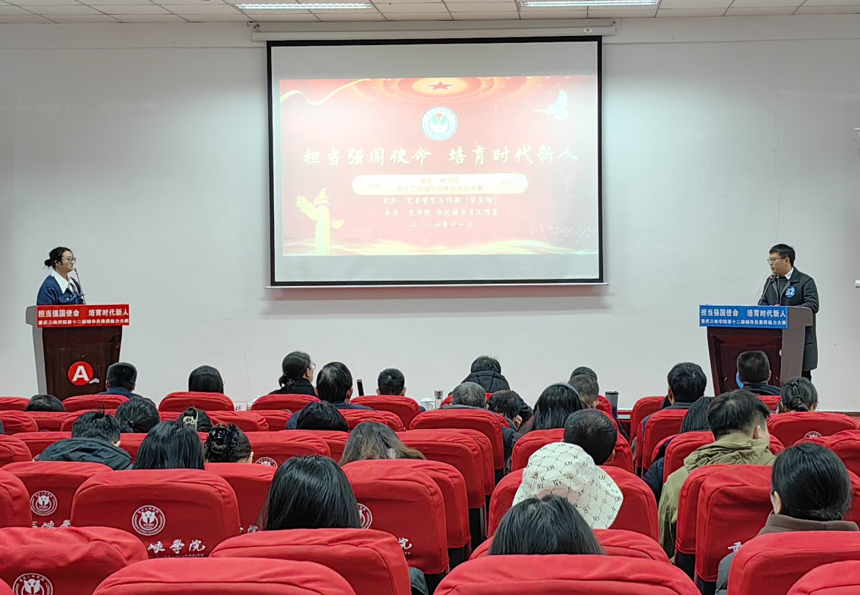 11月29日上午,第十二届辅导员素质能力大赛在明辨楼2栋106举行,党委常委、副校长尹立孟和各二级学院学工负责人、学工办主任、全体辅导员100余人参加活动。