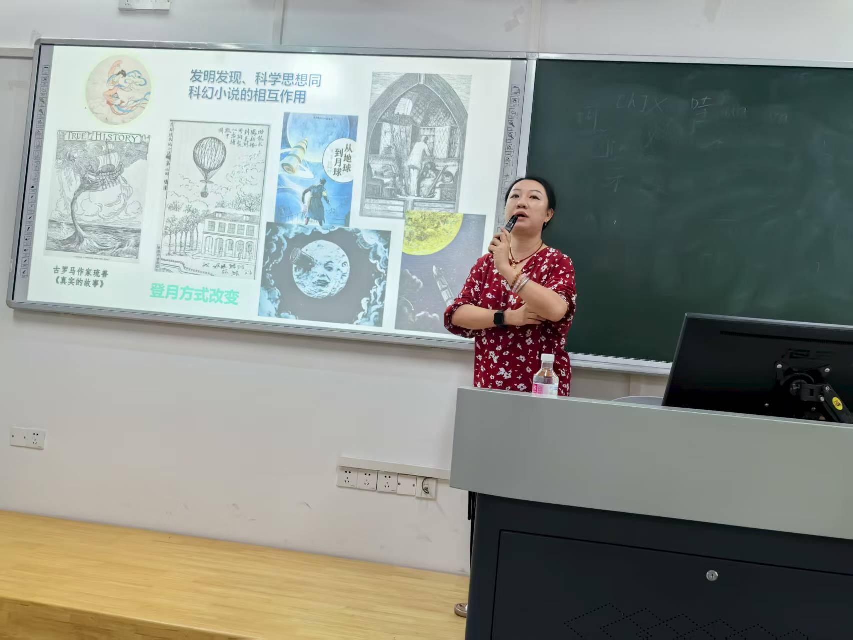 讲座中,罗琳结合科幻文学发展历史及个人创作经历,从“什么是科幻文学”“科幻文学的主要题材与经典作品”“故事模板的思考”“科幻文学创作的储备”等角度与师生们进行了交流。罗琳认为:科幻不仅是科学的预言,更是对人类文明走向的哲学思辨,科幻文学创作需扎根科学素养与人文关怀。