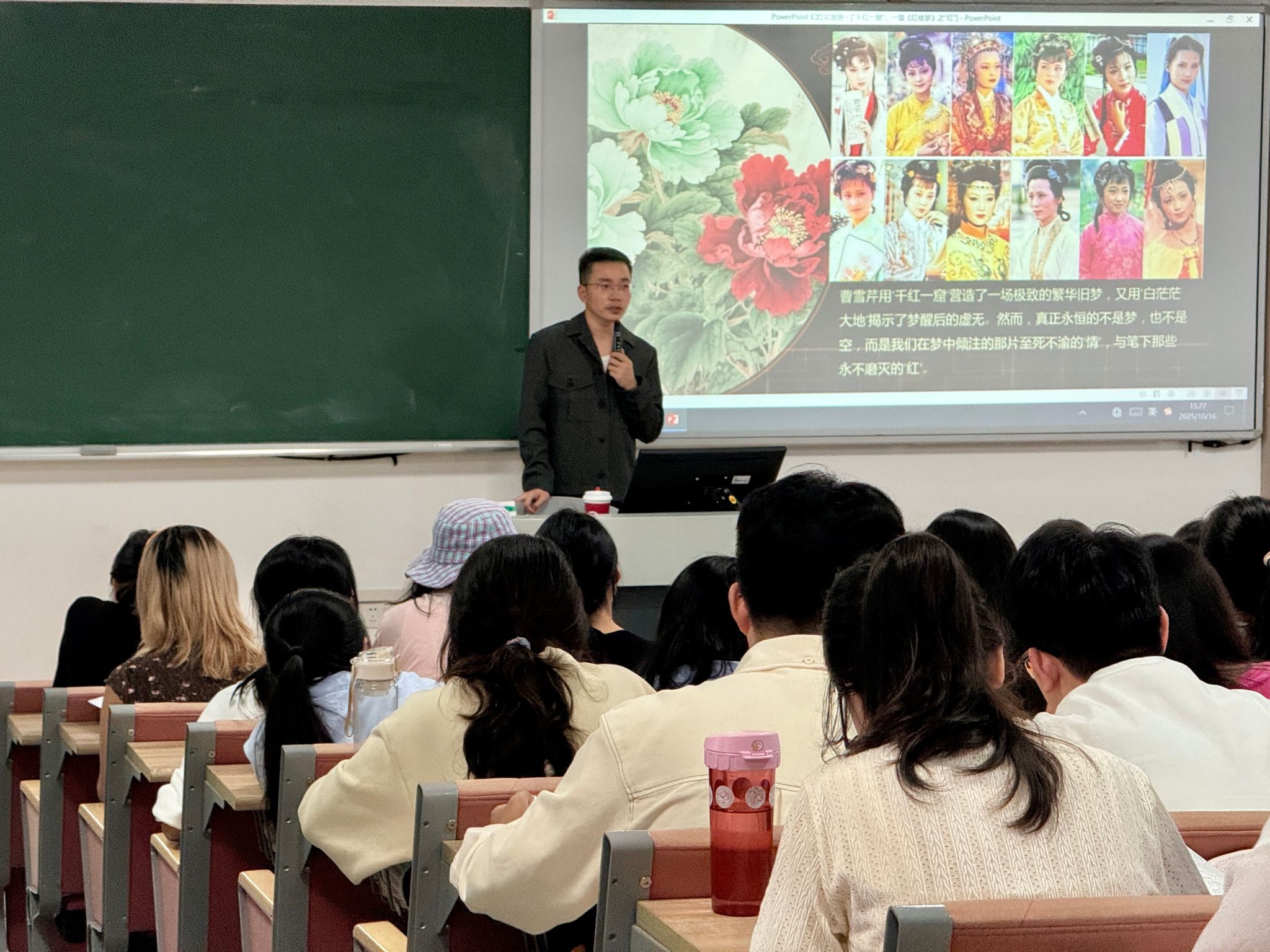 讲座以“‘千红一窟’:一瞥《红楼梦》之‘红’”为题。潘云贵博士从文化研究视角进行文本细读,透过《红楼梦》中的服饰穿戴、园林景观、诗词曲赋、人物形象等方面对“红”进行探究,多维度深挖“红”的文化底蕴与美学价值,清晰阐释其承载的历史底蕴、文化内涵与精神价值,同时指出“红”在《红楼梦》美学建构中的关键作用。