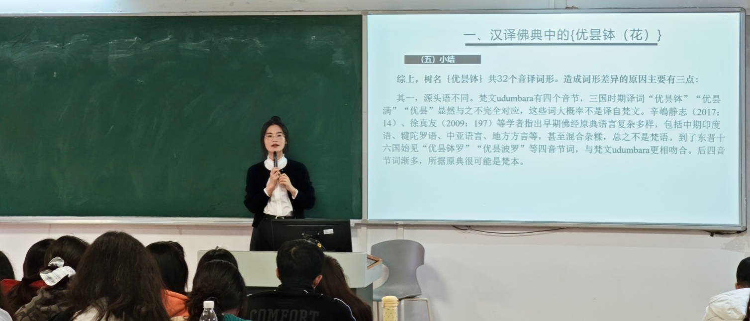 讲座聚焦“昙花”一词的源流演变,郝静博士以“优昙钵花”与“昙花”的文献梳理为切入点,系统考证二者在不同历史时期的语义嬗变及内在关联。她认为“昙花”的指称对象已从最初的桑科植物,逐渐演变为如今的仙人掌科植物,这一变化既折射出汉语词汇的历史发展规律,也彰显了佛经外来词在中国文化语境中的适应与重构历程。
