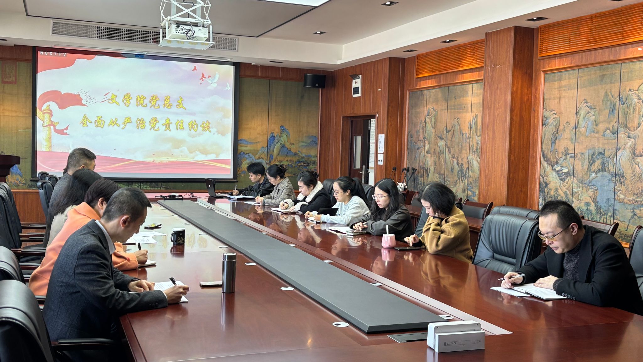 11月11日,bw必威西汉姆联官网党总支召开集体约谈会,传达落实学校纪委关于全面从严治党的工作要求。学院班子成员、党总支委员、党支部书记、专职组织员及各系(室)负责人参加会议。