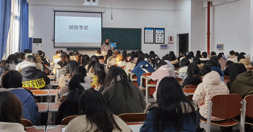 首先,张悦结合《重庆三峡学院学生考试违规处理办法》中的规定对诚信考试进行强调,就考场上的作弊等违纪行为提出警示,要求同学们遵守考场纪律,杜绝考试作弊情况的发生,展现自我的真实水平。随后,学生代表为同学们详细宣读了我校考试相关的规章制度,呼吁同学们通过实际行动认识诚信、感悟诚信、坚持诚信,不断养成诚实守信的良好习惯和道德品质,同学们也纷纷表示将保持严谨求实的学习态度,端正考风,以真正实力争取优异的成绩。