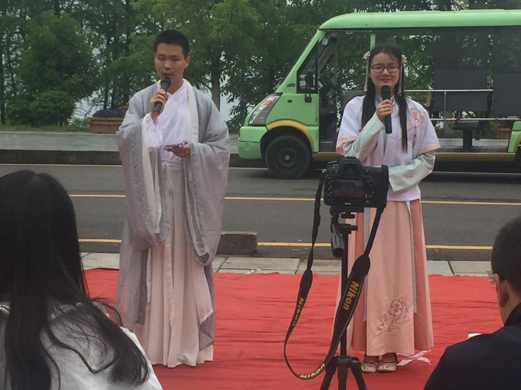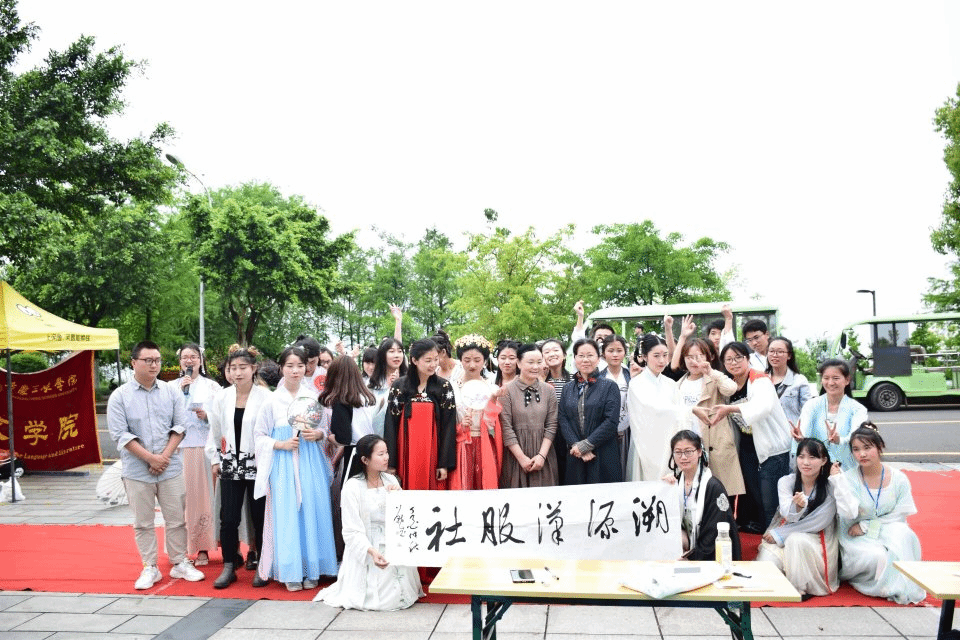 4月21日上午我院第一届“不负韶华”仿古妆大赛决赛于山顶食堂门口举行,传媒学院广电系系主任余曲老师、我院周红苓老师应邀作为本次比赛的特邀嘉宾出席,我院学生会主席谢宽、团联认证部郭玉雯以及溯源汉服社副社长张磊、手工部副部长杨恬出席并担任评委。