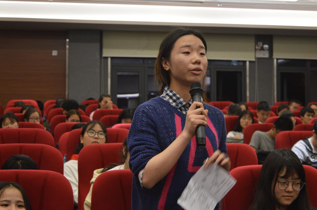 随后,进入共聊阶段,学生们结合教授们的奋斗经历,针对自己的学习、工作经历提出问题。有学生向教授咨询书单及考研问题,教授们结合自己的考研经历谈到同学主要需要克服考研的前奏问题,首先要解决现状太安逸的问题,其次要对考研有清晰的概念认知;也有同学对是否留学生会部门难以抉择,教授们表示青年人应该多参与实践活动以锻炼自己的能力,权衡好学习与工作,互相促进;还有同学对于郭教授的经历分享并结合自身经历有感而发,讲述自己大学中对“独立、自信、拼搏、梦想”这四个词的疑惑和心中感想,感染了现场老师和同学,郭教授对此提出三点建议:向辅导员老师寻求帮助、寻找自身的正确定位、坚定梦想。