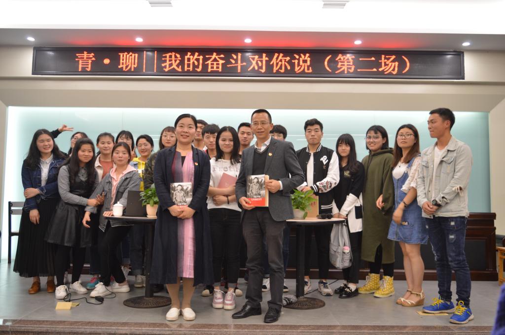 接着,郭作飞教授分享了自己的学习生活经历,作为我校第一位研究生,他脚踏实地地走过每一个阶段,并用四个词语总结奋斗经历:一是独立,我的青春我做主,青年人自己经营人生;二是自信,这是青春应该有的姿态,青年人应该做到家事国事天下事事事关心;三是拼搏,郭教授谈到自己的学习经历是一个有磨难的过程,在于特定历史条件下的物质情况,在于自己的半工半读情况,如今青年人的各方面条件更加良好,可是也应该懂得磨难,因为奋斗的青春最美丽;四是梦想,青年人不仅要脚踏实地,还要抬头望天,要坚定自己的梦想。