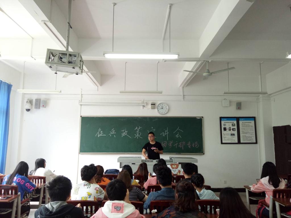 5月2日中午12:00,我院于1教312举办了团学干部专场征兵政策宣讲会。会议由我院学生会主席谢宽主讲,我院各团学干部参加。