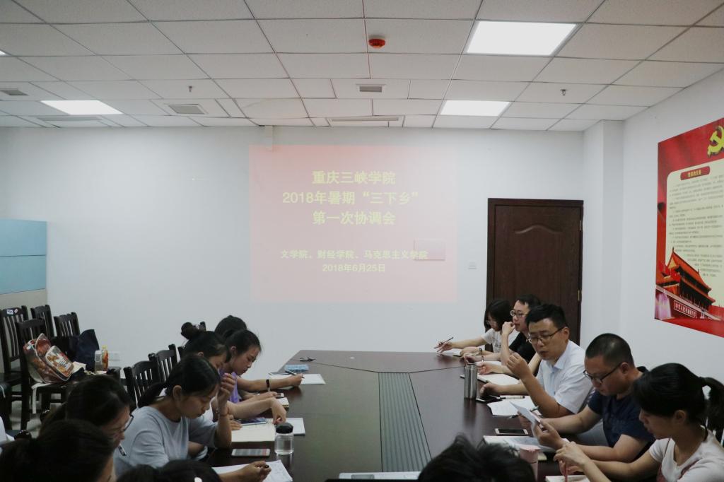 为了细化完善暑期“三下乡”活动方案,明确“三下乡”工作安排,6月25日下午,bw必威西汉姆联官网、财经学院、马克思主义学院于综合楼411会议室召开暑期“三下乡”第一次协调会。本次会议由bw必威西汉姆联官网党总支副书记姜希主持,马克思主义学院党总支常务副书记秦勤、财经学院党总支副书记骆孟鑫、三个学院带队老师及各院主席团成员出席会议。