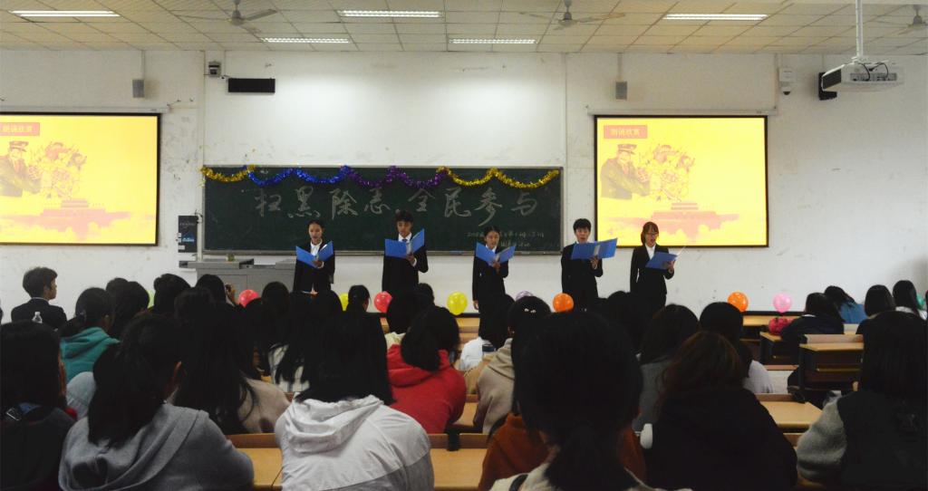 活动在团员们的歌声中拉开了序幕,首先大家观看了扫黑除恶视频,该视频利用动画形式生动地为大家讲述了公安机关将对利用家族势力欺压百姓、在工程项目建设中煽动闹事、在建筑或交通行业非法行事、经营“黄赌毒”、非法高利放贷等违法犯罪活动依法严厉打击。随后,精彩的“惩恶扬善拳”传播出满满正能量。一出《纯净校园》小品表演以幽默风趣的方式反映了扫黑除恶的重要性。手语操《国家》更是让同学们感慨颇多。接着,有关扫黑除恶的知识问答将现场气氛推向高潮,与此同时竞答互动也增加了同学们对扫黑除恶知识的了解。