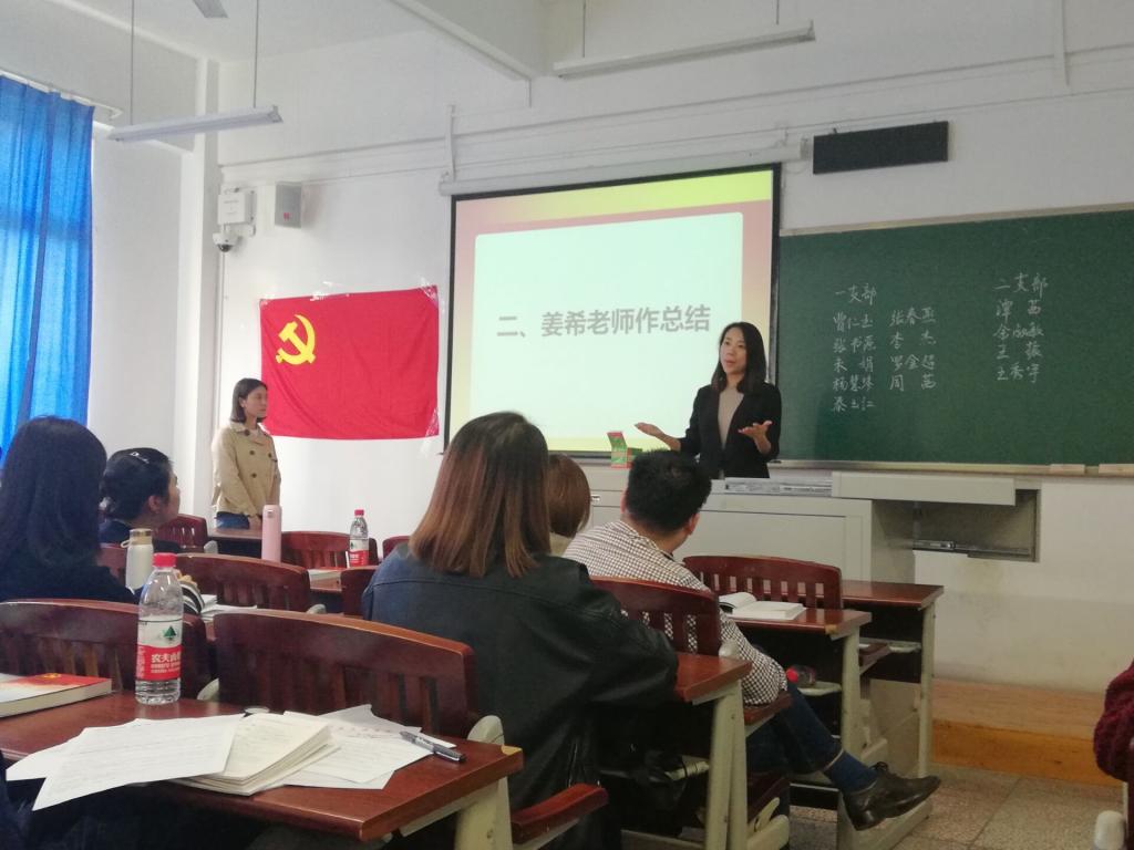 为进一步完善大学生党员发展工作,提高大学生党员的思想政治素质、发挥其先锋模范作用,11月1日下午,bw必威西汉姆联官网党总支学生党支部于明辨楼一栋312室举行了学生党员发展推优答辩会。我院党总支副书记姜希、团总支书记兼学工办主任熊维娟、学生党支部书记阮碧波、聂兰、辅导员张悦和支部全体党员同志出席大会,本次答辩由党支部党员李越同志主持。