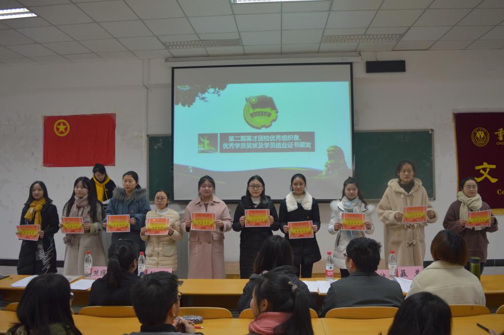 大会伊始,团总支副书记秦红玉宣读表彰文件,随后,2018级汉教3班的刘俊含同学作为优秀学员代表发言,她表示本次团校培训让她进一步认识到作为青年学者的使命和责任,争做一名有理想、有道德、有文化、有纪律的青年大学生的重要性。