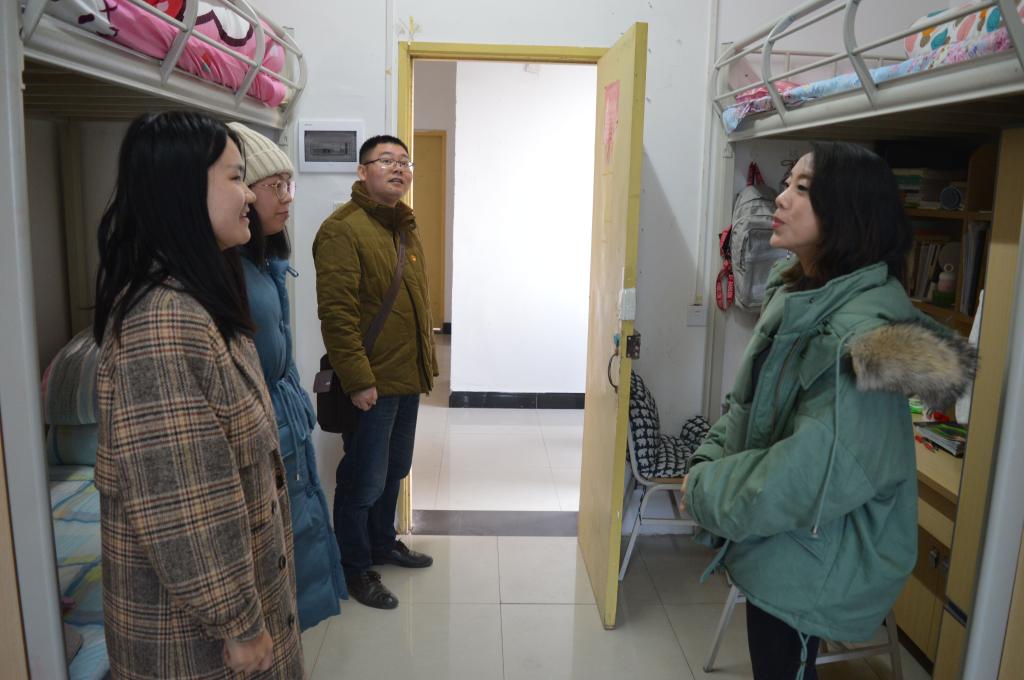 走访过程中,姜书记指出寝室是同学们学习生活很重要的一个场所,也是我校德育美育和绿色校园建设的重点阵地之一,大家一定要做好寝室清洁卫生,养成良好生活习惯。接着姜书记强调了“两节三夜”及期末安全问题,要求同学们提高安全防范意识,注意在校及返家途中的人身及财产安全,遵守寝室作息时间。最后,姜书记嘱咐同学们在期末考试即将来临之际,务必做到好好复习,诚信考试,并预祝同学们都能考出满意的成绩。