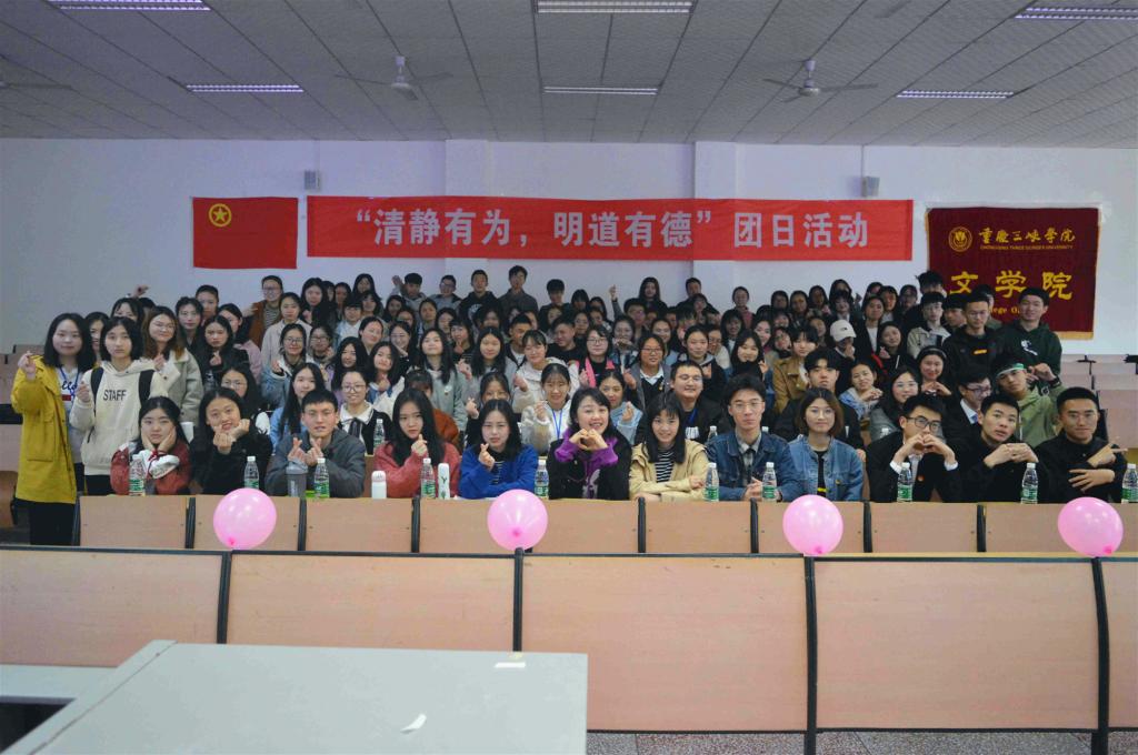 为引导青年学生尊重传统、继承传统,我院2018级汉语言文学一班、二班于4月3日中午在明辨楼二栋103开展 “清静有为,明道有德”主题团日活动。我院团总支书记兼学工办主任熊维娟出席本次活动。