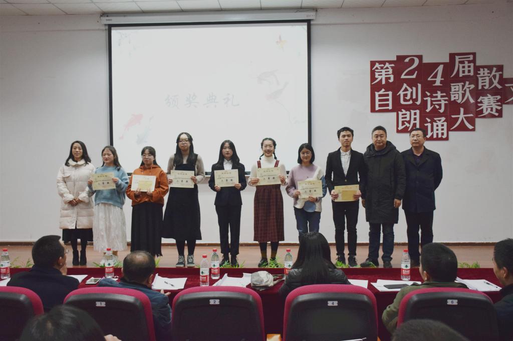12月12日晚,重庆三峡学院第24届自创诗歌散文朗诵大赛在明辨楼2栋106室隆重举行,学校教务处处长韩红宇、副处长秦刚及我院党政领导及部分教师出席本次活动。