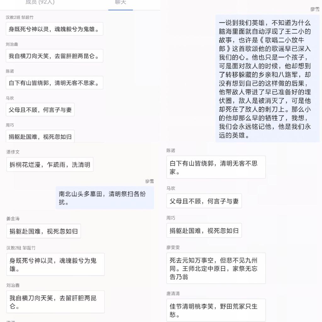 为追忆革命丰碑,传承高尚革命精神,增强学生对中国革命历史的认同感和激发学生的爱国情怀,我院于4月5日举办“缅怀英烈祭忠魂,抚今追昔思奋进”主题线上团日活动。我院主席团成员及2019级汉教1、2班全体学生参与本次活动。