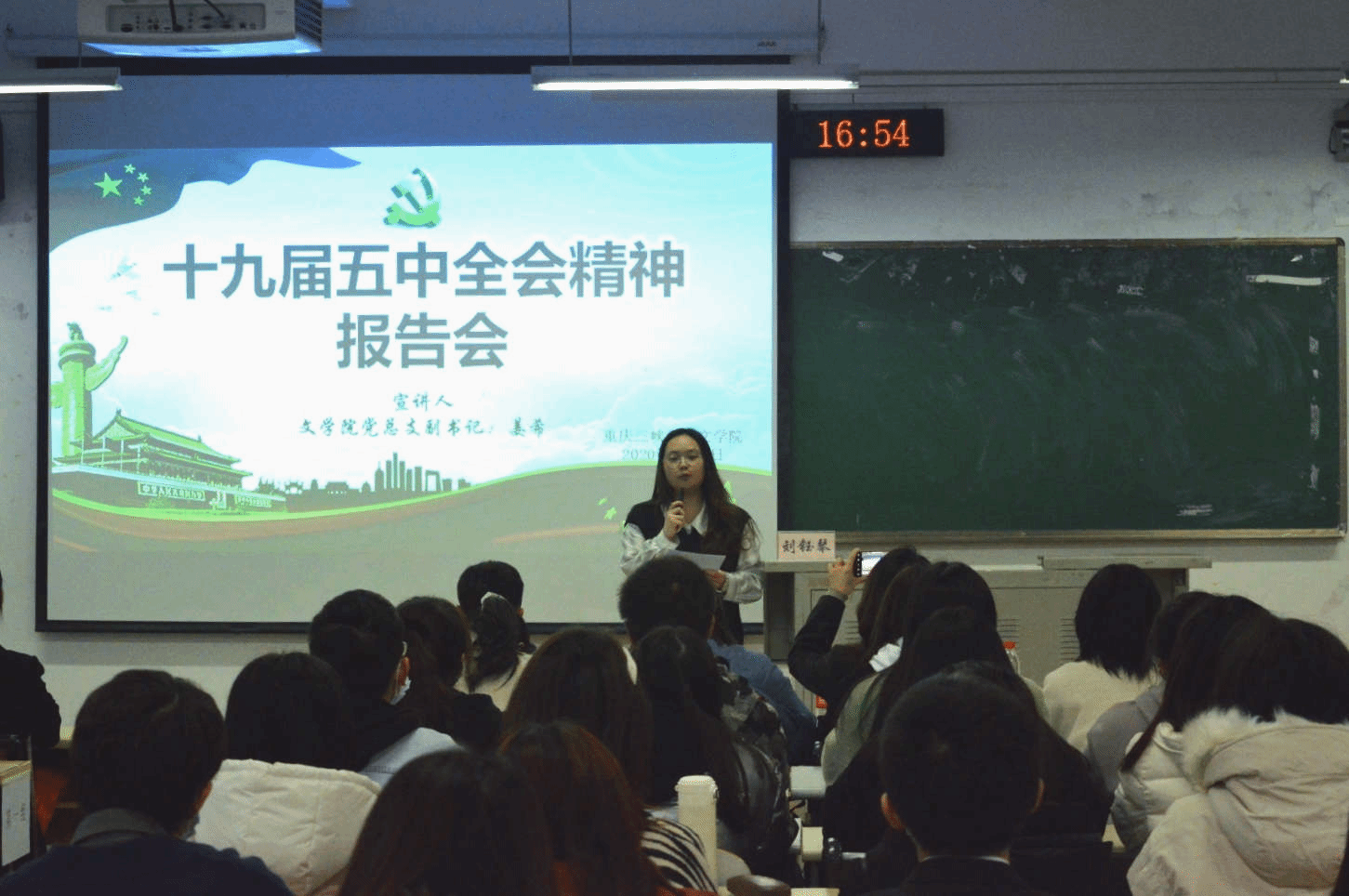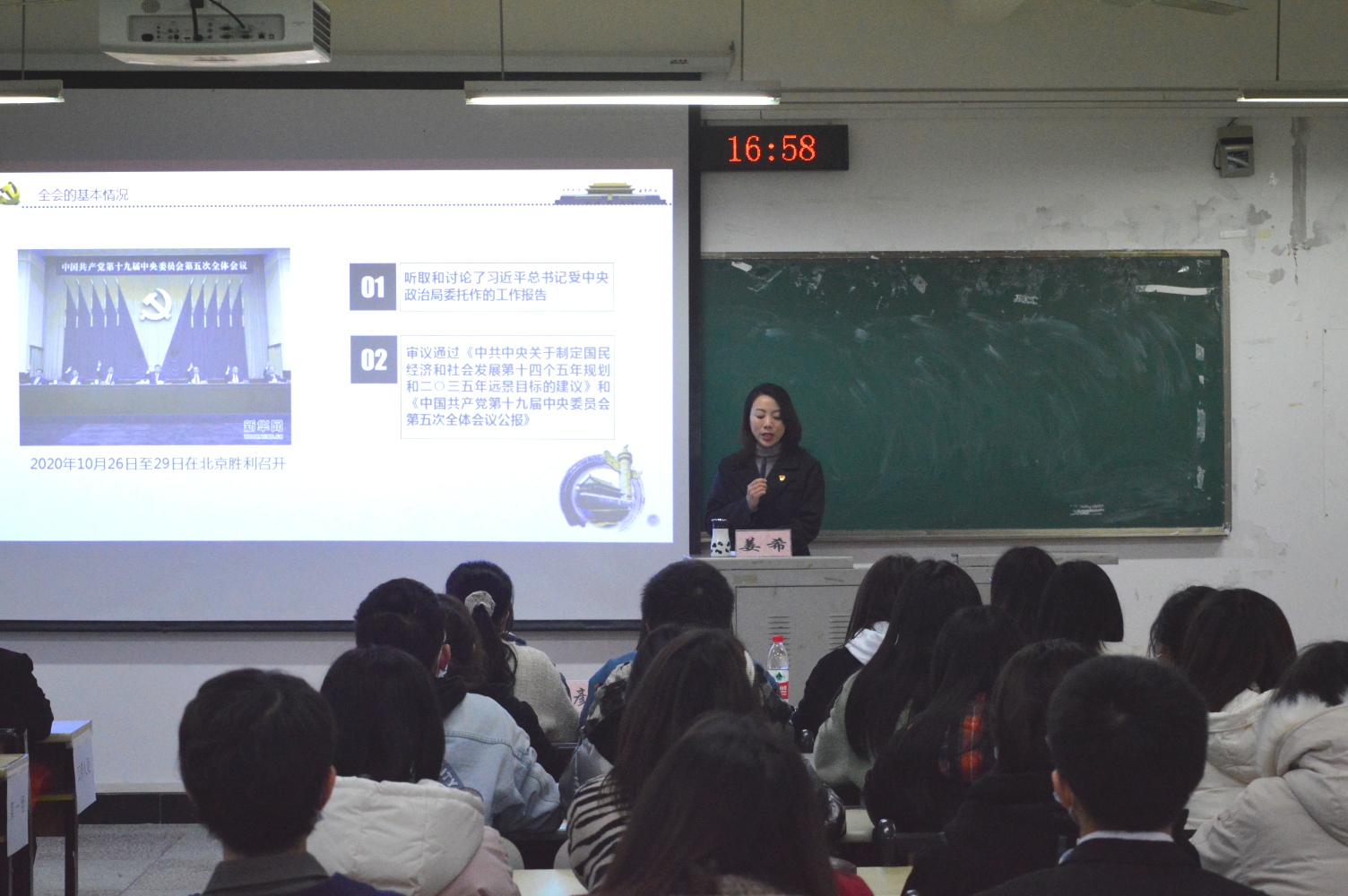 为进一步提高我院学子对党的十九届五中全会精神的理解,发挥学生干部带头学的作用,我院于12月4日在明辨楼2教301室举办十九届五中全会精神系列宣讲会。我院团学骨干、入党积极分子和各班优秀团员代表参与学习。本次会议由我院党总支副书记姜希宣讲,bw必威西汉姆联官网团总支副书记刘钰琴主持。