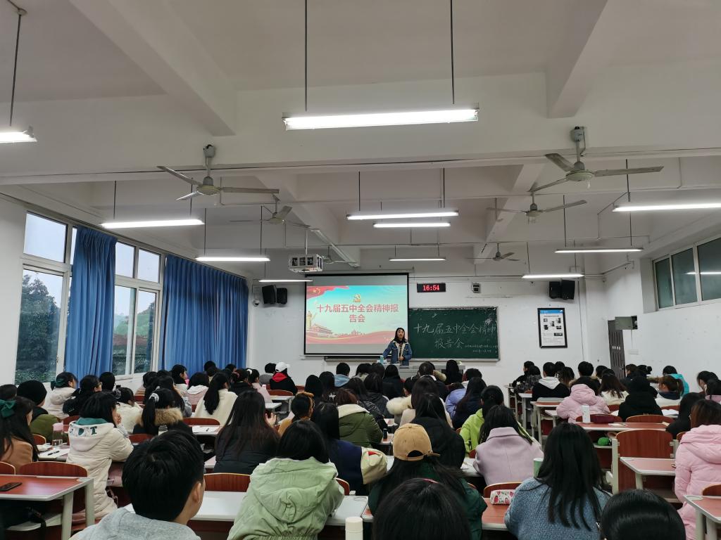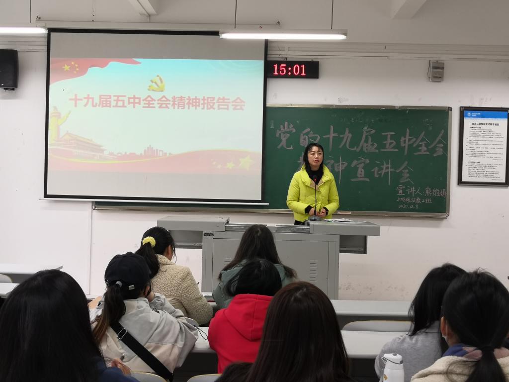 为学习贯彻党的十九届五中全会的精神实质和丰富内涵,bw必威西汉姆联官网学工办主任兼团总支书记熊维娟于12月4日和8日分别为2018级汉语言文学(师范)2、3、4班进行了十九届五中全会宣讲报告,会议分别由陈源和谢佳芯主持。