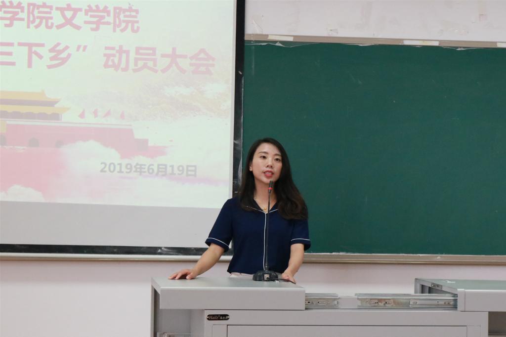 为明确暑期“三下乡”工作安排,确保活动顺利展开,我院于6月19日17:00在明辨楼4栋503室召开2019年暑期“三下乡”动员大会,党总支书记孙天波、副书记姜希、团总支书记兼学工办主任熊维娟出席本次活动。
