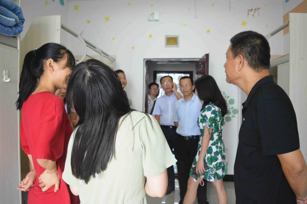 在走访过程中,郭院长一行人与学生及部分学生家长亲切交谈,询问了学生入学报到是否顺利,是否适应学校的环境等内容。而后,他们仔细检查了新生寝室设施,进行安全隐患排查并指导学生按照宿舍管理规定摆放个人物品、打造宿舍文化,提醒防骗防盗、拒绝推销等问题。最后,我院领导、老师对新生提出殷切期望,希望新生能够尽快做好角色转变,融入大学生活当中去,奋发向上,学有所成。
