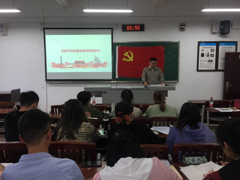 在会议上,党支部书记阮碧波老师带领大家一起学习了“牢记初心使命,推进自我革新”的讲话精神,要求每一位学生都要认真思考“如何永葆先进性和纯洁性、永葆青春活力,如何永远得到人民拥护和支持,如何实现长期执政”的问题,指出党员同志应该增强“四个意识”、坚定“四个自信”、做到“两个维护”,围绕守初心、担使命,找差距、抓落实的总要求发扬自我革命精神。阮碧波老师还强调,学生党员应具备政治敏锐性,跟紧党和国家前进的步伐,在日常生活中注意自己的言行举止,时时刻刻发挥先锋模范作用。