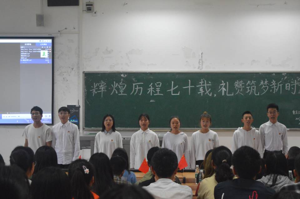 为深入学习贯彻习近平新时代中国特色社会主义思想,纪念中华人民共和国成立70周年,我院于10月11日在明辨楼2教101召开“辉煌历程七十载,礼赞逐梦新时代”主题团日活动,2019级汉语言文学1、2班全体团员及主席团成员参与本次活动。