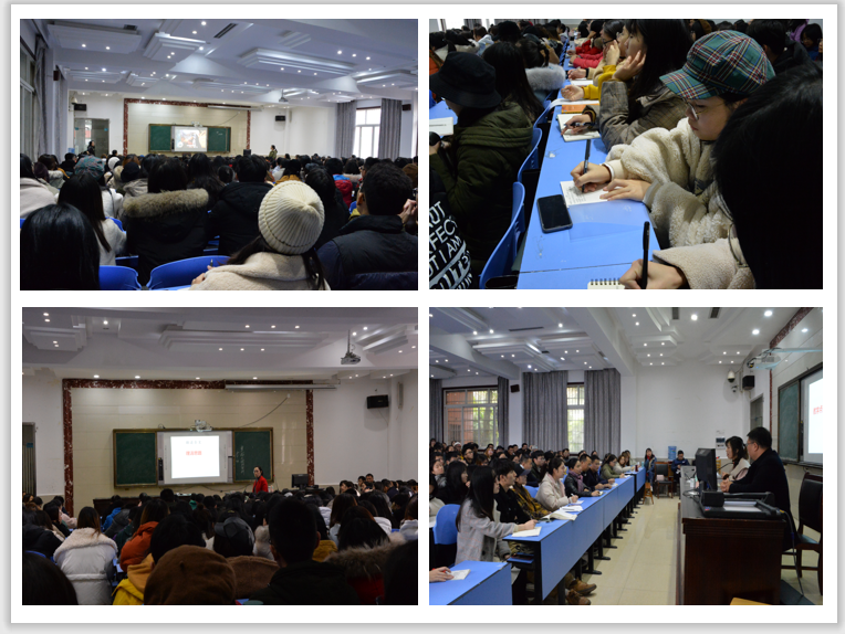活动中,万州上海中学优秀教师向菲和邓辉分别为我院师生展示了初中课文《猫》及高中课文《梦游天姥吟留别》的示范教学。向菲老师抓住授课对象心理,通过视频引入课题,利于互动形式对课文进行层层分析。邓辉老师则从预习检测、朗读导入,再到情景分析对课文进行了教学。她们严谨的教学态度、清晰的教学思路、良好的教学素养折服了我院师生。课后,在场学生聆听语文组教师评课活动,深入探讨、研究教学问题。