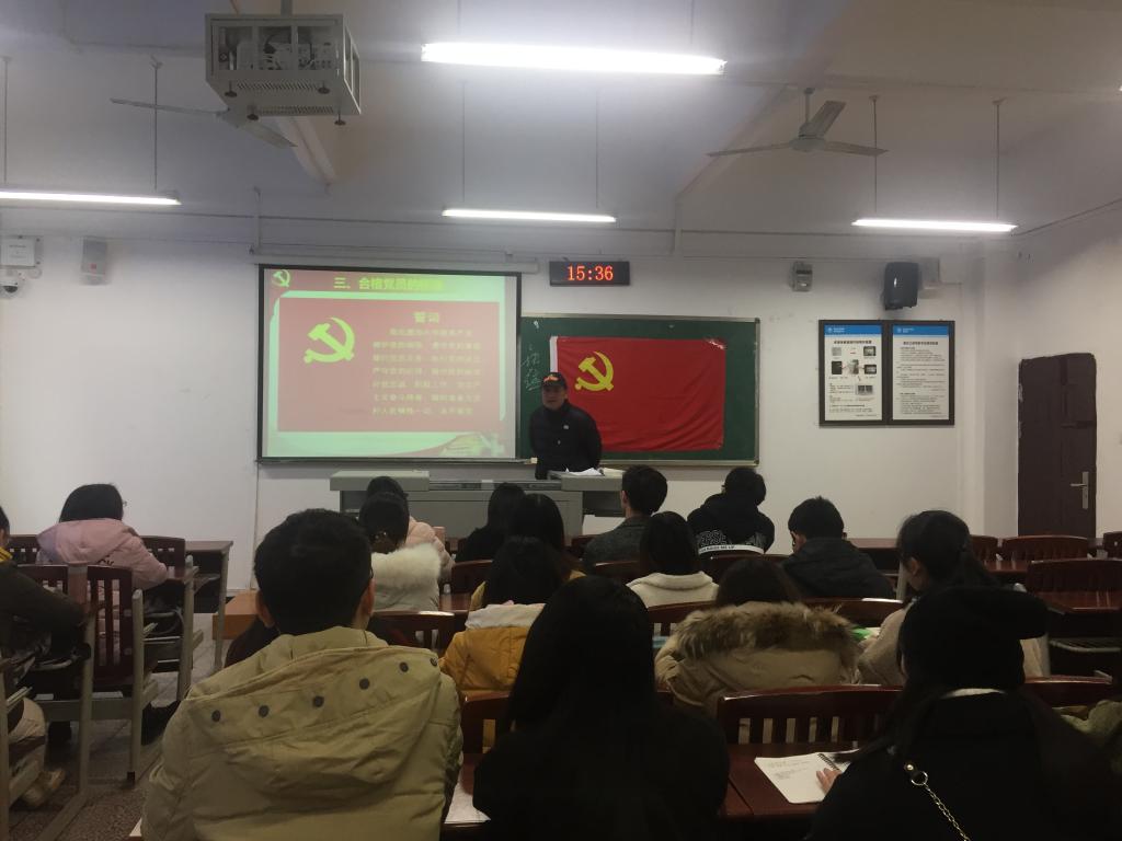 为了进一步加强学生党员的理想信念,发挥学生党员的先锋模范作用,2019年12月12日下午,我院党总支书记孙天波为学生党员上了一堂以“坚定理想信念,做合格的共产党员”为主题的党课。
