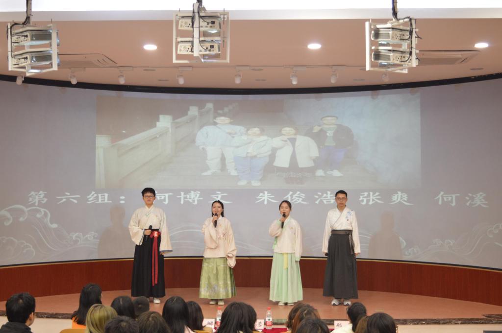 在经过前期初赛、复赛的紧张逐鹿后,最终共有六组队伍成功进入决赛。《祖国啊,祖国》《大雪中的中国》等六组作品分别展现了我院学子对党的热爱以及对抗疫战士的歌颂。《写给春天》的5位参赛者以小品形式进行朗诵,让观众们身临其境,切身体会到疫情期间武汉人民的抗疫精神;《请铭记,雾重庆》则表达了中华儿女对于历史苦难、民族英雄的铭记深思,显示了中华民族走向复兴的美好愿景;《归处》的参赛选手穿上了汉服,一句“《广陵散》万不可失传于后世!”牵动着观众们的心,赢得了一片掌声。